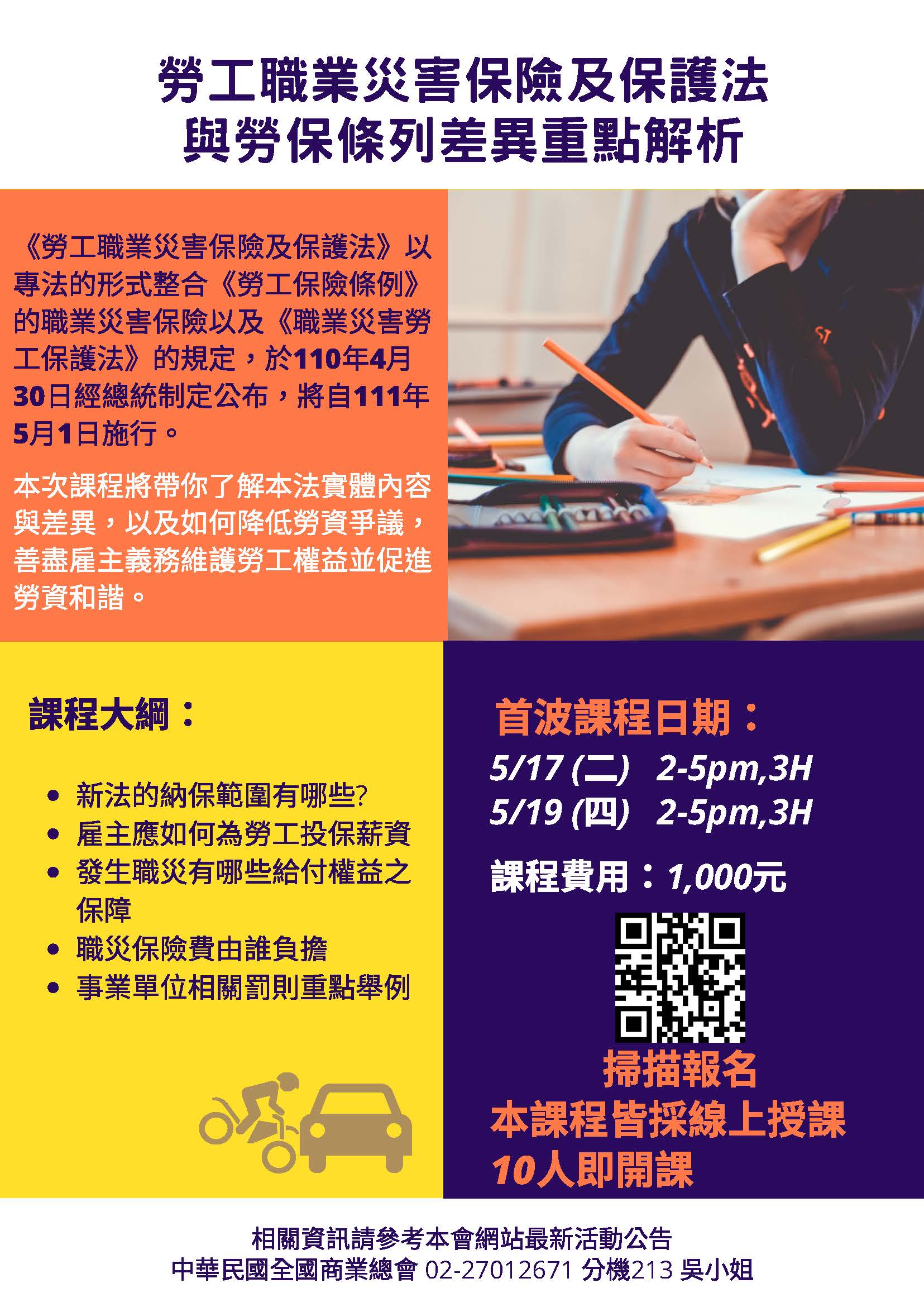 若因招生不足或延課等因素,主辦單位將退還已繳交課程費用。